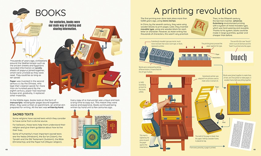 All animals communicate with each other in one form or another, but humans are unique in that we have been able to go much further, creating languages and symbols to share and explain ideas, feelings and abstract concepts. Communication has allowed us to make breakthroughs in science and convey emotions through art and music, and in order to communicate faster and farther, we have created technologies ranging from writing to the Internet. Almost everything we do during the day is a form of communication – not only when we speak, listen, read or write, but also when we see road signs or read each other’s body language. This beautifully illustrated book tells the story of communication in all its many forms, from ancient times to AI.