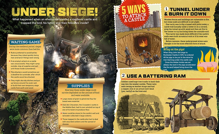 Factology: Castles takes you over distinctly whiffy moats and beyond the battlements into the hothouses of medieval history. At their height, these magnificent, fortified homes were at the centre of major world events and packed to the turrets with life. Rulers used their castles to defend territory, stash their riches and house their friends and family. To do that they depended on knights and soldiers, and they also needed an army of servants, cooks and all kinds of craftspeople to maintain their cushy lifestyle. On this guided tour, you’ll meet them all, explore their world and see the extreme ways in which vicious invaders tried to spoil the party!