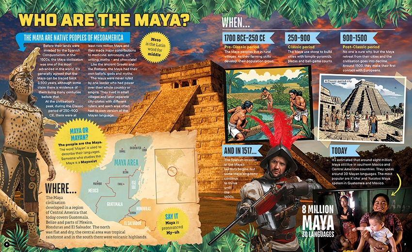 Visit the incredible buildings of the Maya’s magnificent cities, many of which still stand today. Discover how the Maya made groundbreaking advances in farming, astronomy, mathematics, and writing, long before the Western world. Filled with fascinating facts and head-spinning mythology, kids will discover an adventurous world full of fearsome gods, brave heroes and unbelievable knowledge in this graphic guide.