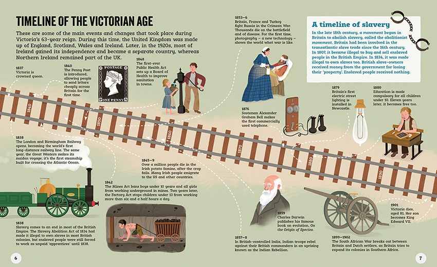 This beautifully illustrated book takes young readers on an immersive tour of a transformative period in history, when the Industrial Revolution, new inventions, and social change reshaped life in Britain. From grand mansions to crowded workhouses, children will explore the stark contrasts between the lives of the wealthy and the poor, gaining insight into Victorian fashion, food, jobs, education, and even life in prisons and service.